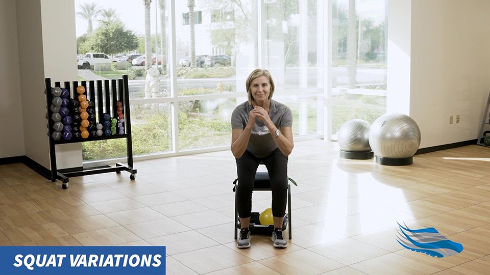 The squat, or bend and lift, is a key movement pattern for older adults. The ability to perform daily tasks such as standing up from a seated position is important in maintaining independence, and the ability to perform daily tasks like getting in and out of a car, standing up and sitting down in a chair is critical for maintaining functional ability.