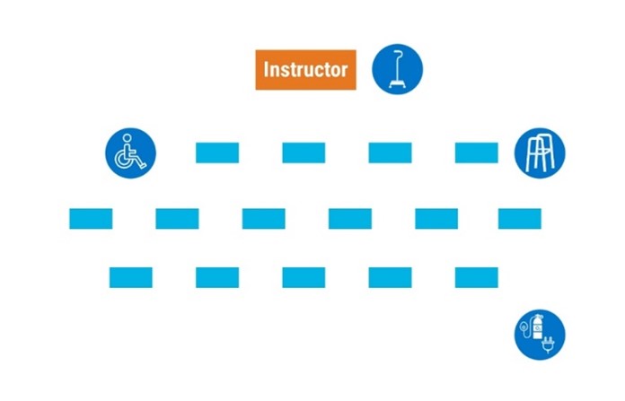 Instructors should take responsibility for managing class set up to ensure safety and minimize the risk for tripping hazards.