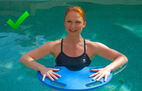 - Provide posture cues such as “bend the knees” and “draw belly button to spine for a strong center.” Shallow water may provide more stability.