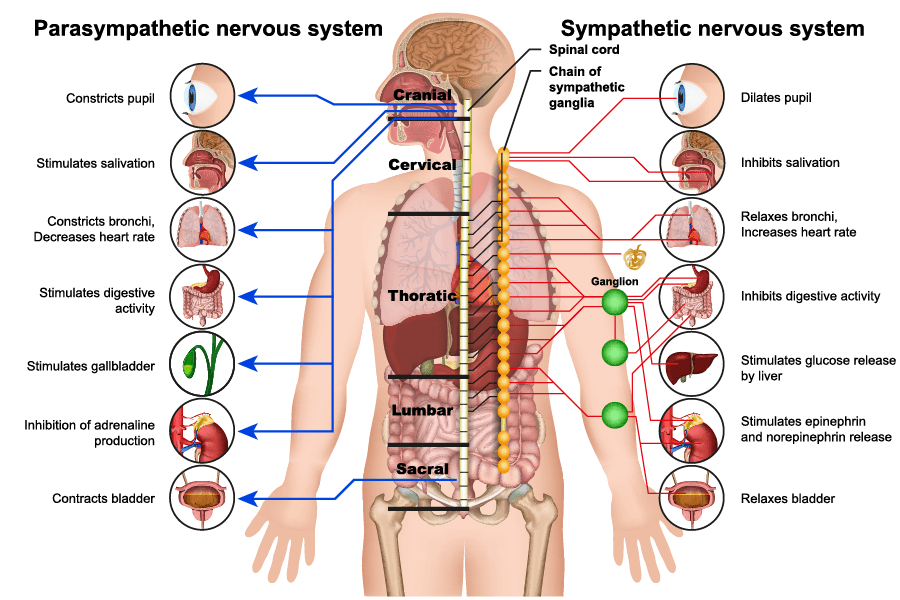 Once the brain senses safety, it quickly switches on the parasympathetic nervous system (PNS), the “rest-and-digest” system, which begins to decrease blood pressure and heart rate, signaling a drop in stress hormone levels, which in turn drops blood sugar levels back to normal.